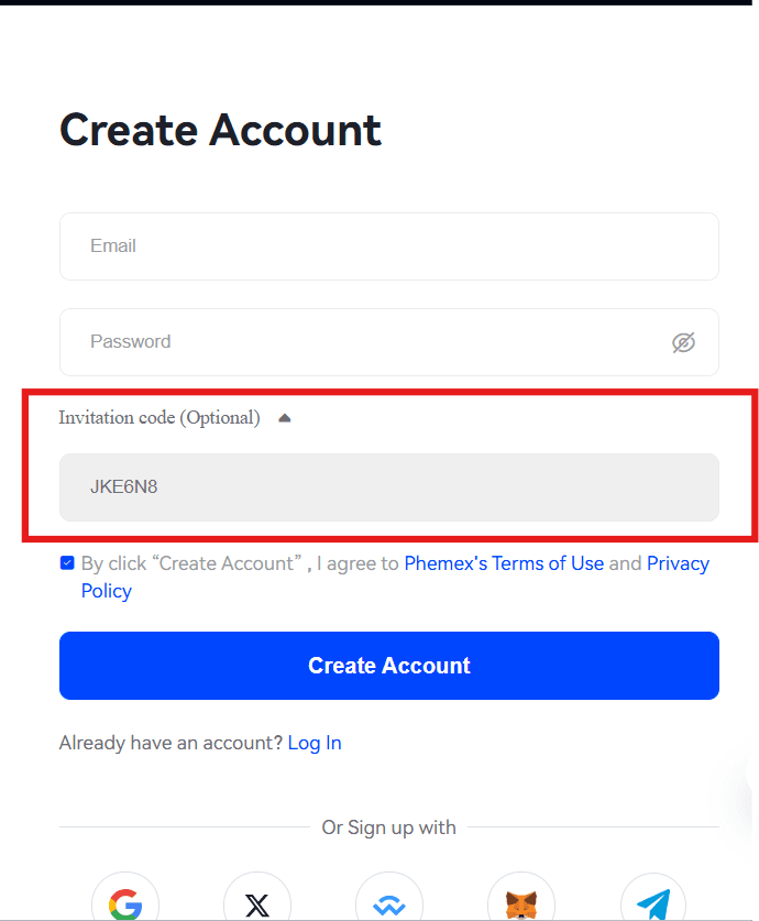 Input the Invitation Code: In the designated field, enter the Phemex Invitation Code.